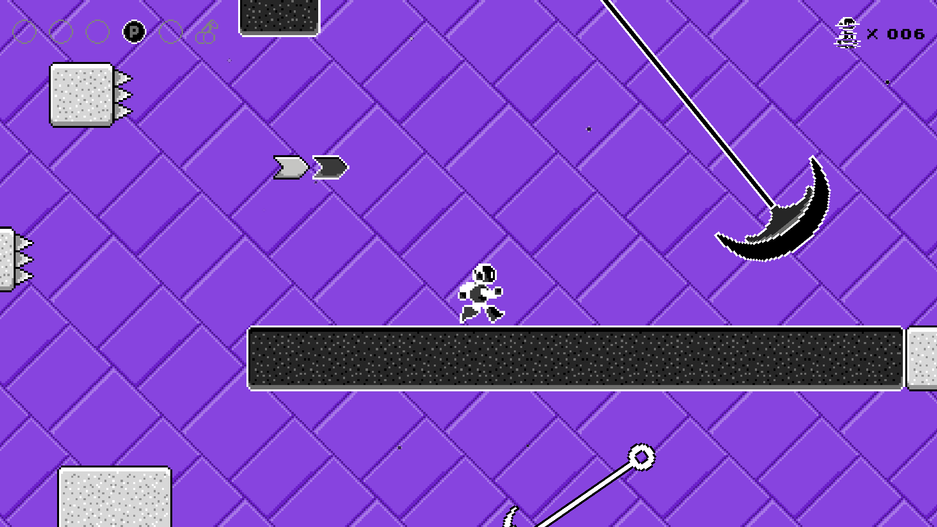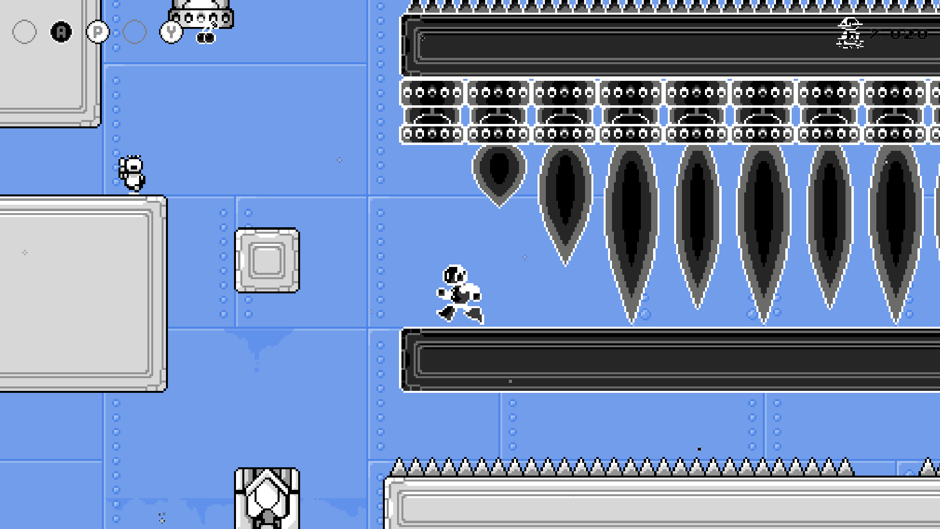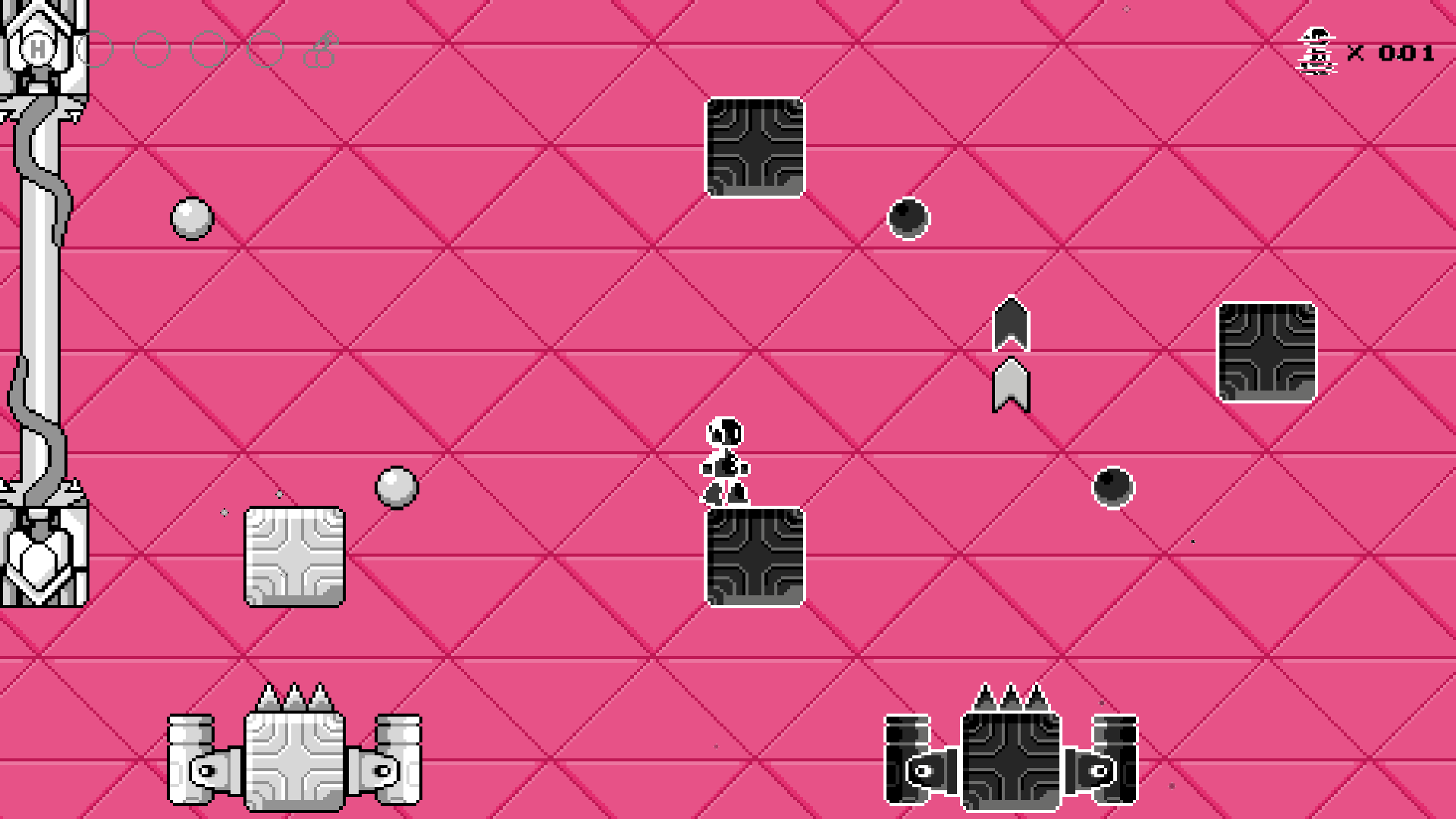 Traditional tough-as-nails platforming meets a novel phase mechanic where players must swap between black and white to avoid hazards and land on platforms.
