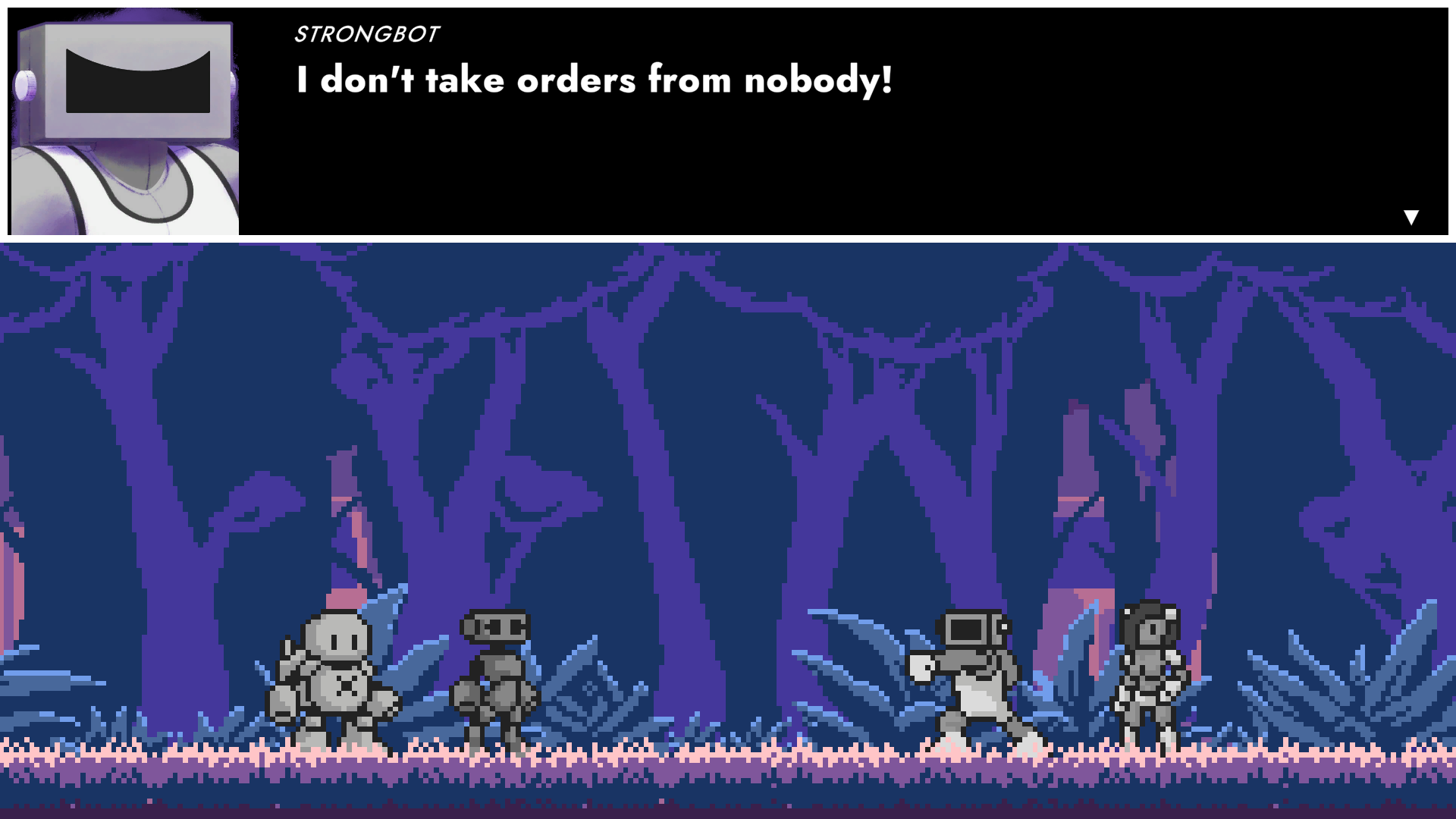 Hand-drawn character portraits that compliment the crisp pixel art.